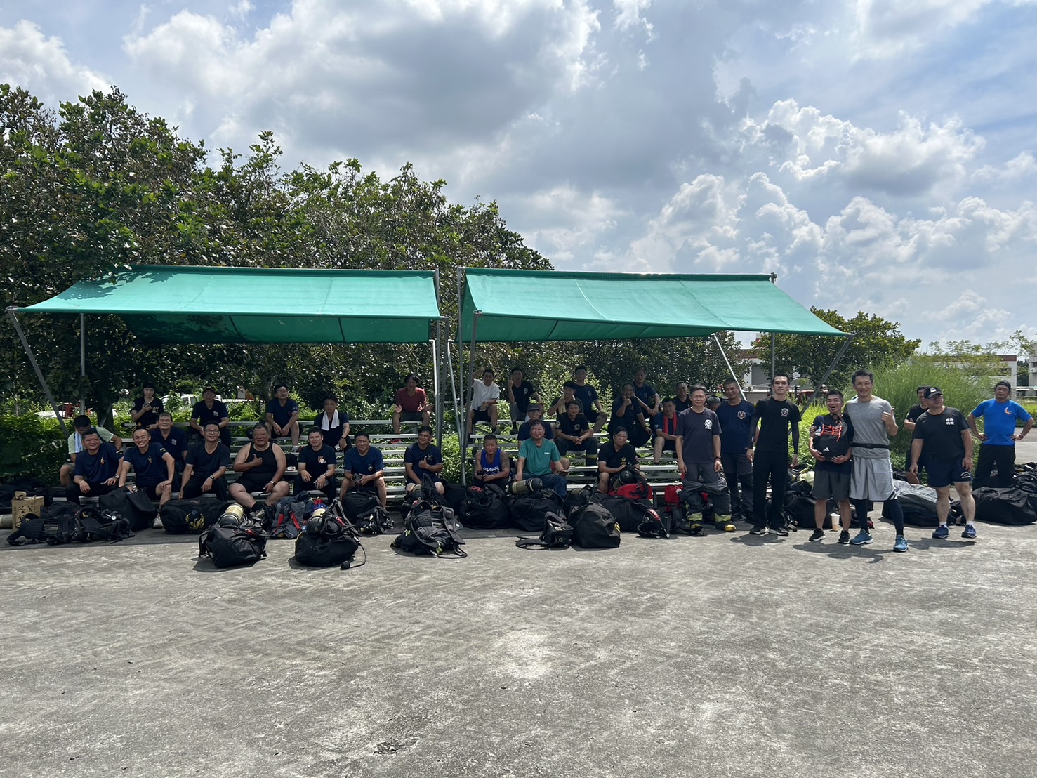 詳細內容:內政部消防署假南投竹山訓練中心辦理「113年義勇消防人員火災搶救進階班(第2期)」,本局參訓日期為8月13日,共計訓練合格39名。 本次課程包含PPE、SCBA穿戴及操作、燃燒櫃訓練、油類火災搶救、貨車載運氣體鋼瓶火災搶救及變壓器火災搶救等。