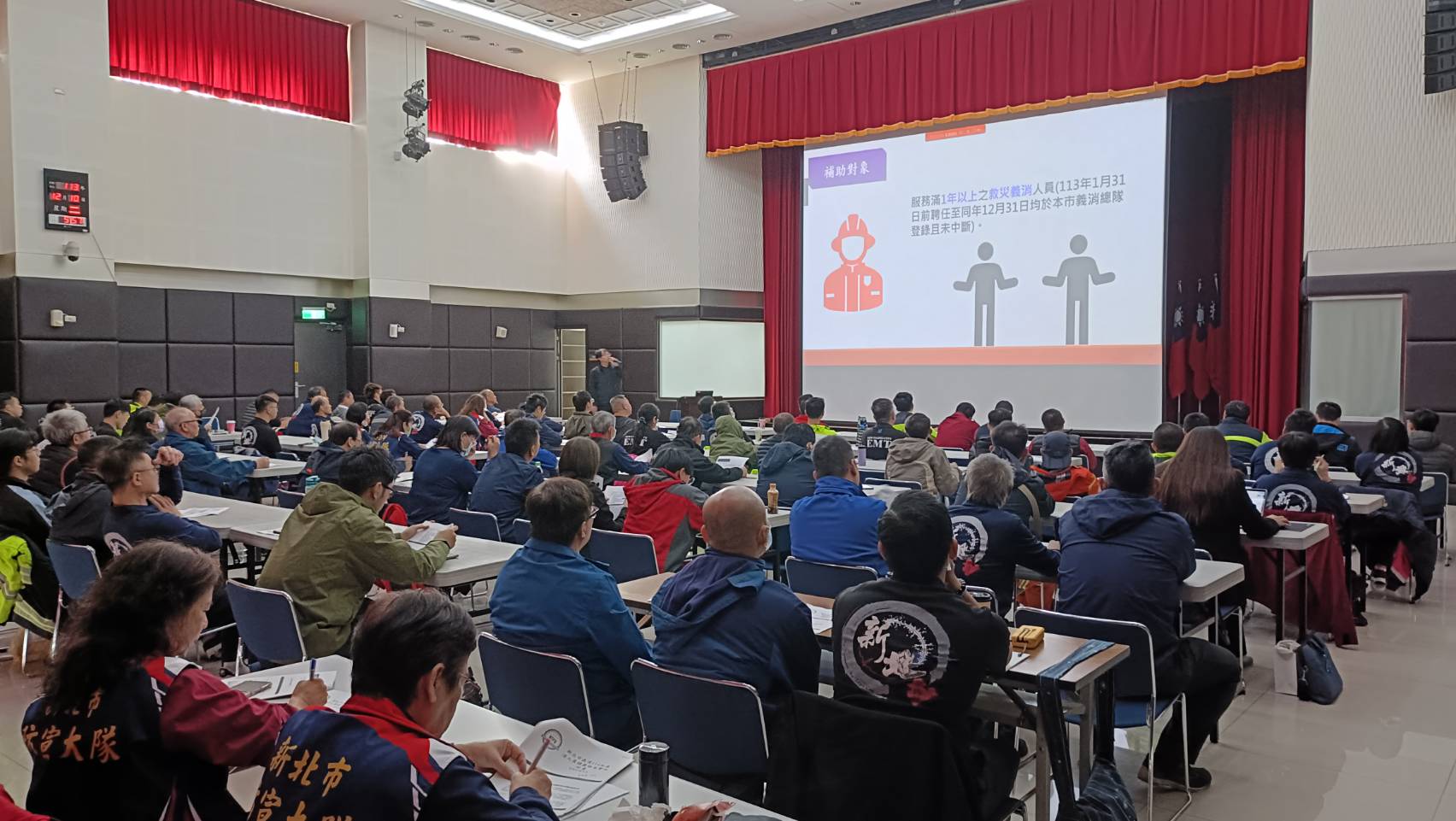 詳細內容:本局民力運用科於113年12月10日假本局9樓大禮堂辦理義消業務講習,期透過交流精進,提升義消業務執行成效; 出席人數包含消防人員41位及義消人員 43位(分隊長以上層級20位+副分隊長 9位+幹事14 位),共計84位參訓。