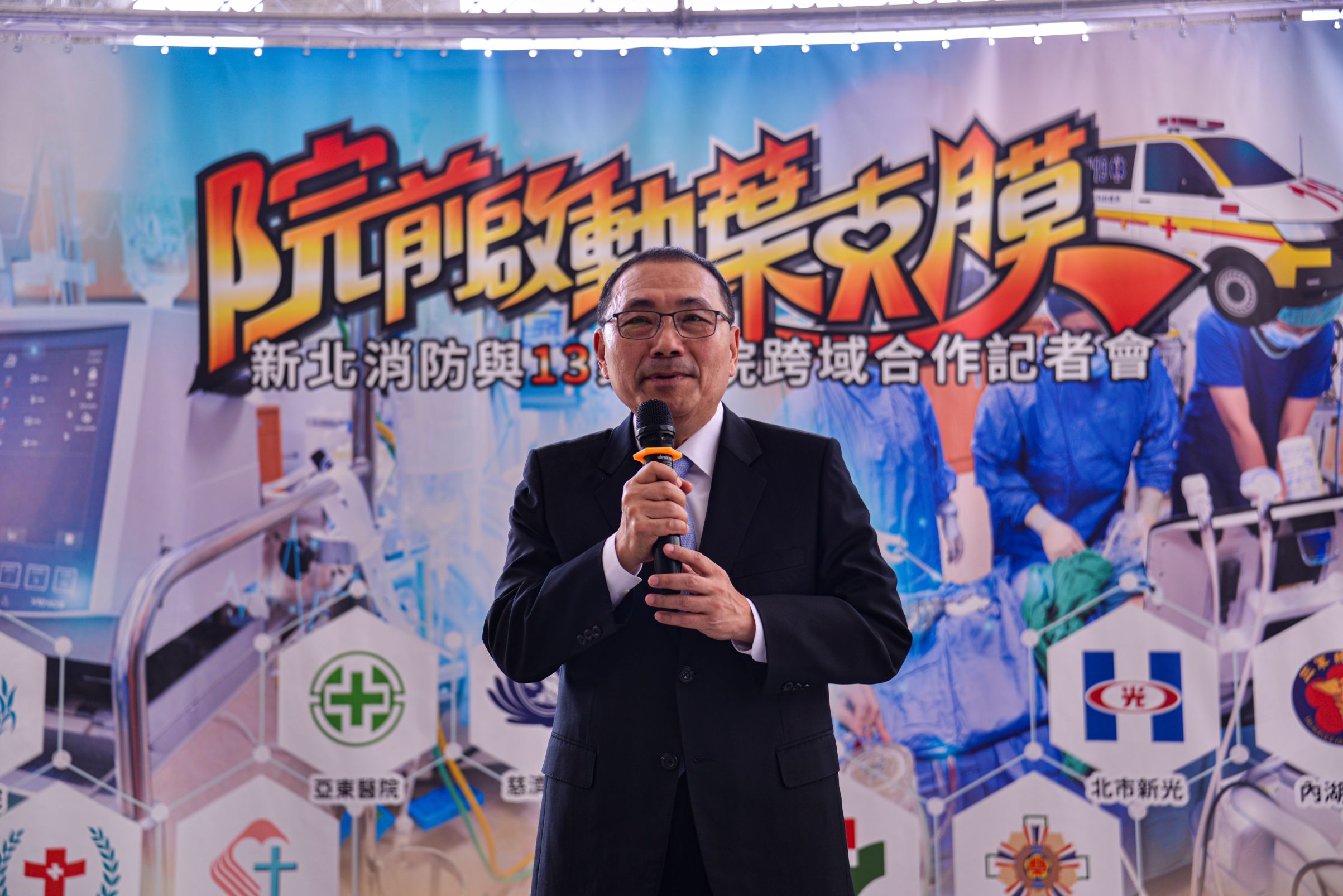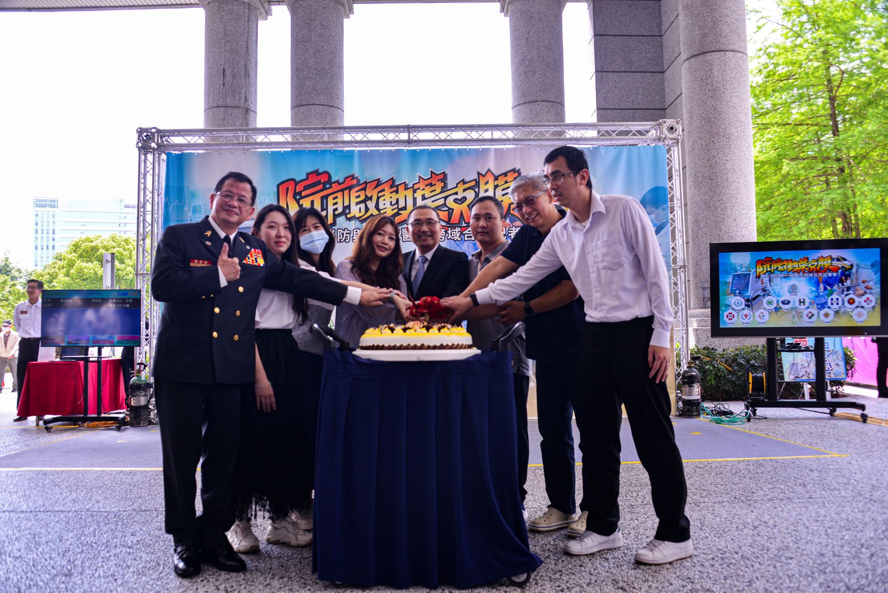 詳細內容:114年4月17日由侯友宜市長在台北慈濟醫院主持院前啟動葉克膜合作記者會,展現DACPR至ECPR完整救援流程,康復者與市長同慶重生,並邀請各合作醫院,象徵跨域合作打造生命之鏈。