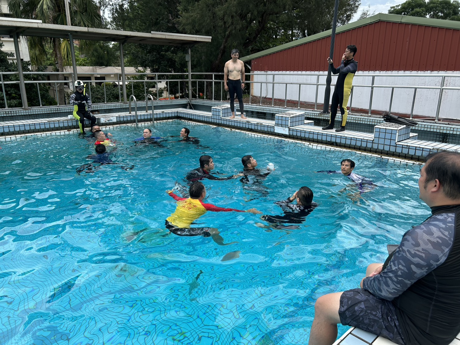 詳細內容:辦理本局潛水搜救隊人員114年度第1次複訓,訓練課程包含潛水裝備檢查(下水前檢查、下水後裝備保養)、基本動作複習(面鏡排水、水肺脫卸、浮力袋)、潛水測驗、全面鏡通訊應用、視線受阻水下搜索法練習(扇形、平行、圓型)等科目,由本局潛水搜救隊資深潛水長輪流擔任教官,訓練人數84名。