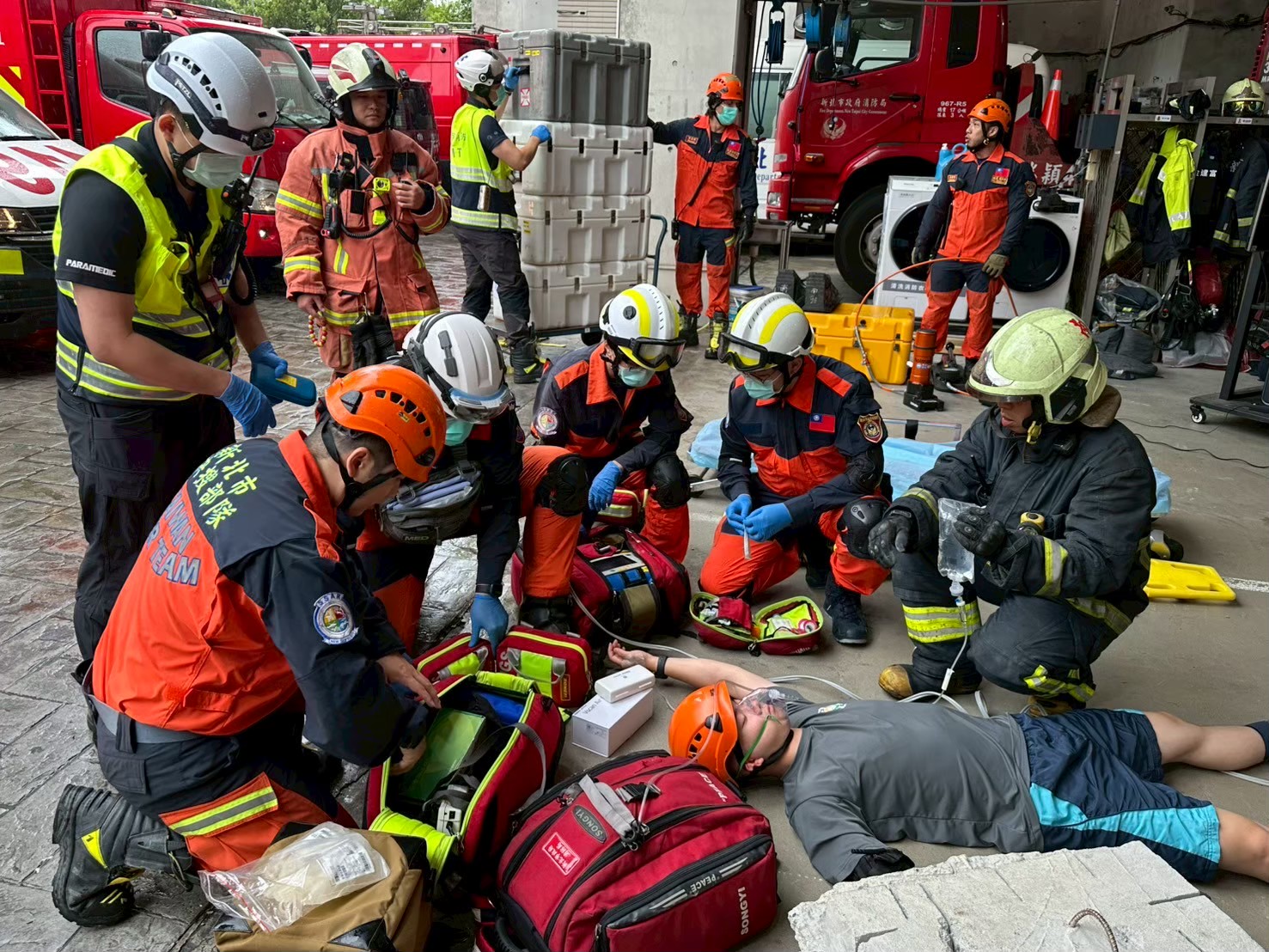 詳細內容:新北市消防局今舉行「快搜、醫院雙軌派遣演練」,模擬地震建物倒塌造成嚴重傷患受困,由特搜人員與醫護團隊協作,於現場進行止痛、輸血、手術等急救處置,實踐災區即時醫療。演練逼真如台版「行動急診室」,展現跨單位整合與即時應變能力,守護災難中的生命希望。