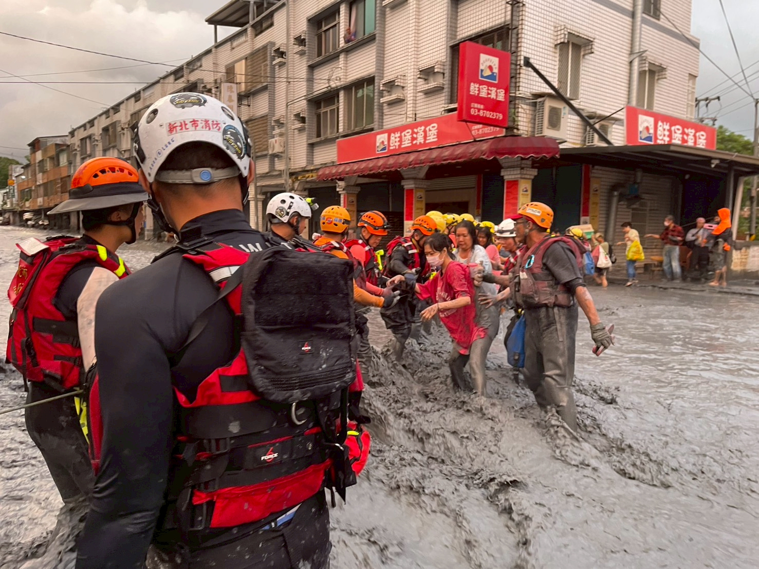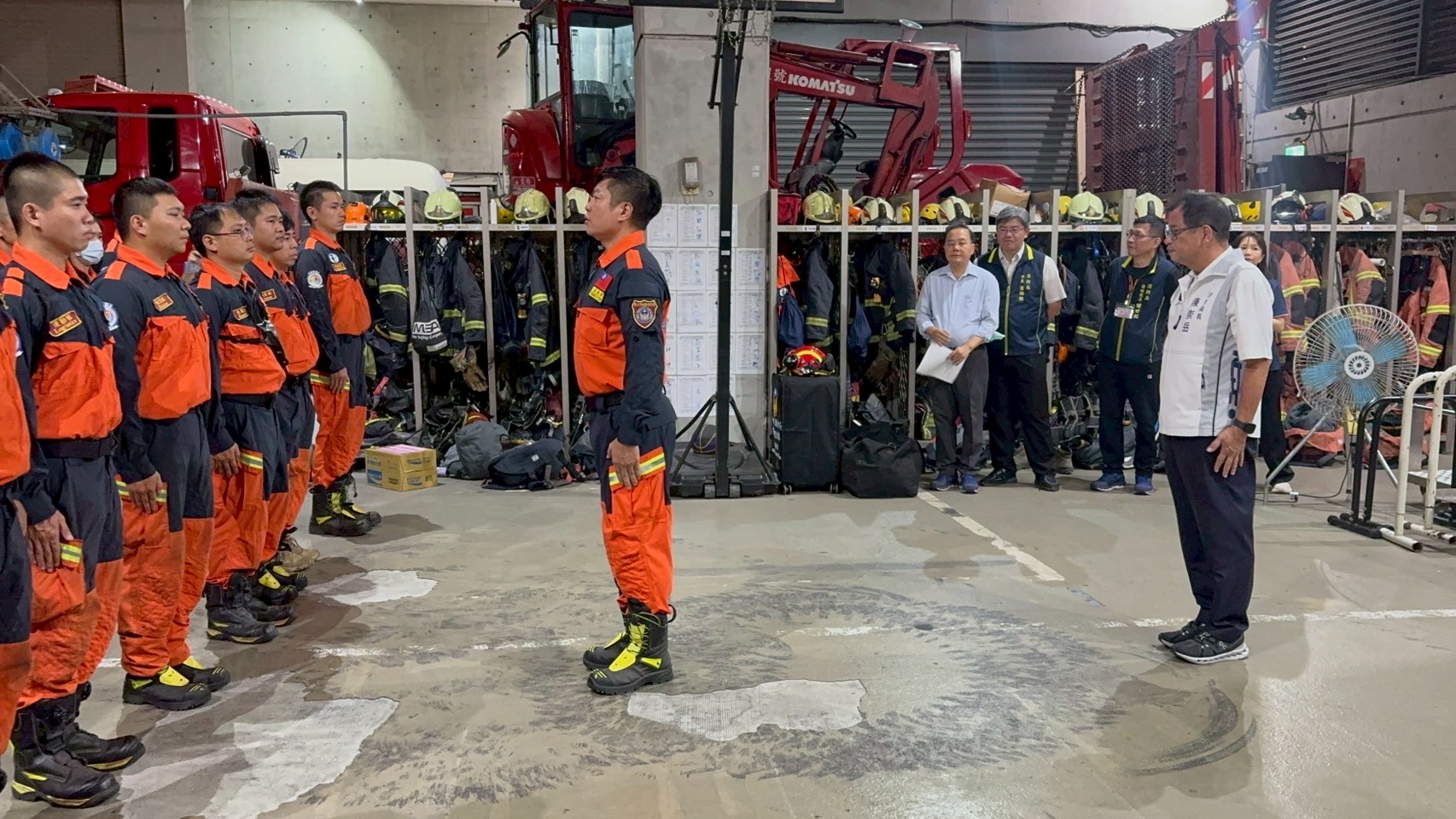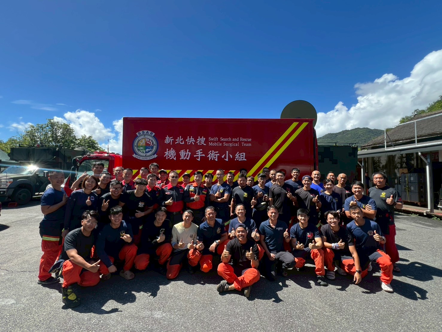 詳細內容:9月23日下午花蓮馬太鞍溪堰塞湖溢堤,造成光復鄉嚴重淹水,當地災情緊急,新北市政府立即啟動跨縣市救援。支援期間共出動150位消防、義消、救難與醫護人員,40輛救災車、12架空拍機、3艘橡皮艇、2隻搜救犬,並出動420人次,完成搜索167戶,協助 232 位受災居民安全撤離,並現場救治13名患者。最後一天,特搜全體同仁以肅立、敬禮的方式,向這片土地與罹難者致敬。