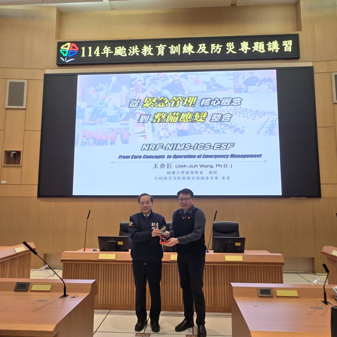 詳細內容:為提升本市各級災害應變中心之垂直溝通整合與協調,本府於114年2月25日特邀請銘傳大學建築學系王价巨教授擔任講師,推廣美國災害應變中心功能分組(ESF)運作實務相關機制,並推進國土安全演習和評估計畫(HSEEP),以建立完善的應變架構基礎,提升本市災害應變效能。