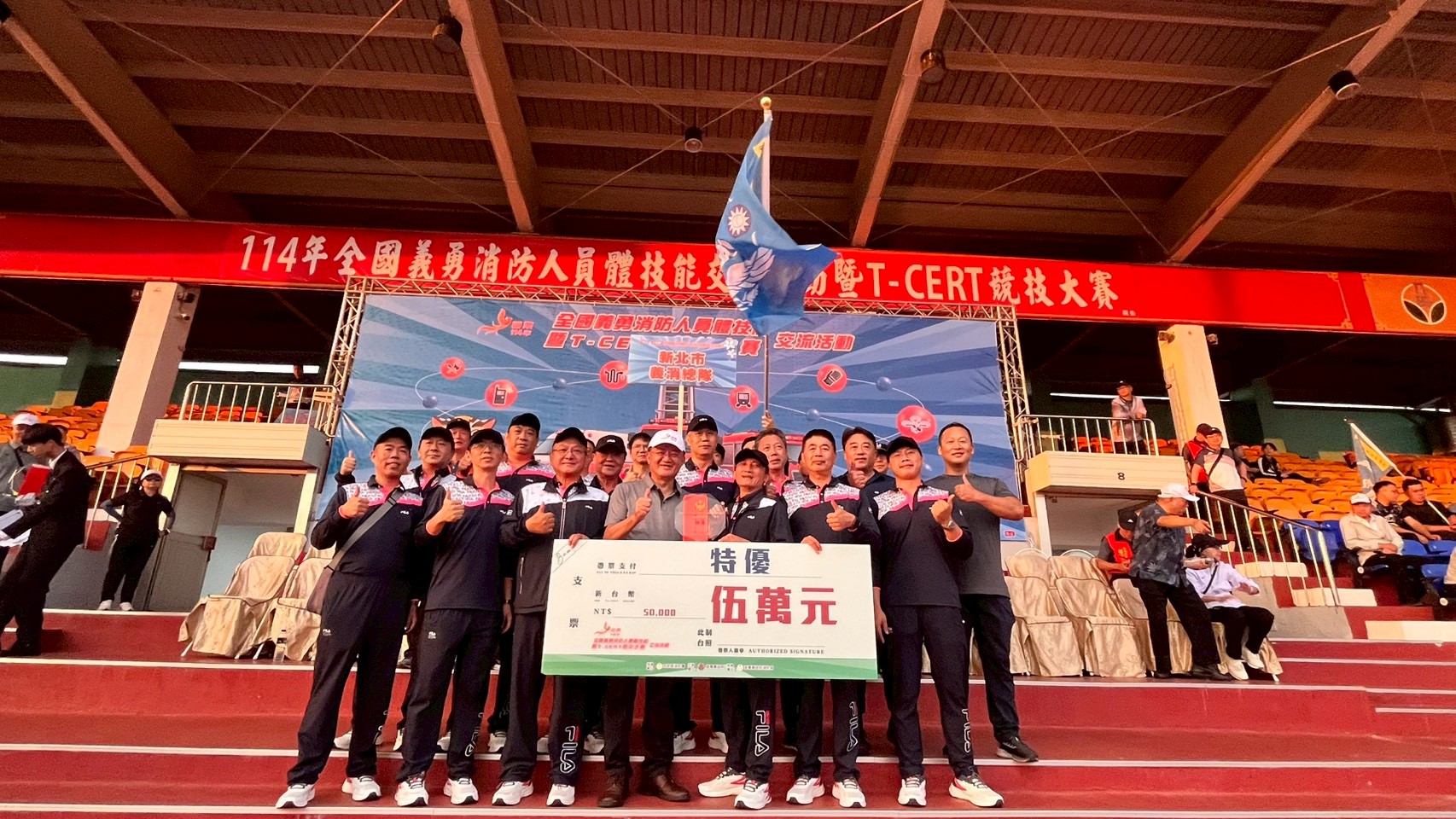 詳細內容:於114年11月1日參加內政部消防署舉辦「114年全國義勇消防人員體技能」,榮獲3項「特優」、2項「優等」及2項「甲等」殊榮,說明如下: (一)「特優」:「車禍救助」-德音義消分隊、「無人機運用」-國光義消分隊及「繩索救援」-新板義消山搜分隊。 (二)「優等」:「火災搶救男子35歲」-福營義消分隊、「火災搶救男子45歲」-南雅大埔義消聯隊。 (三)「甲等」:「火災搶救女子組」-新北市女性義消代表隊、「救護技術」-重陽社后救護義消聯隊。