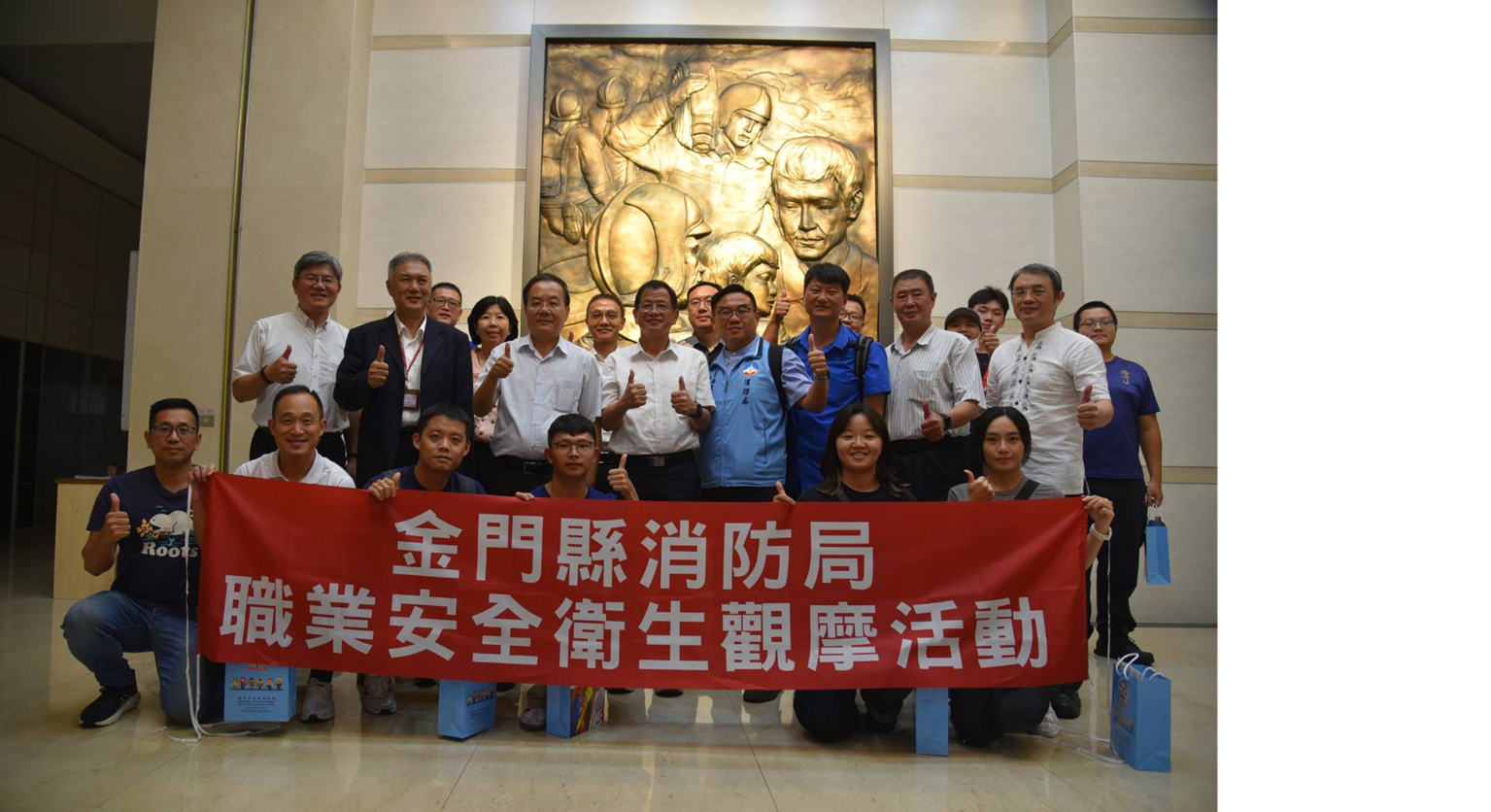 詳細內容:為推動消防人員職業安全衛生防護、促進跨縣市消防事務合作與成果共享,金門縣消防局由陳國瑋副局長率團於114年9月11日下午3時30分到訪新北市政府消防局,消防局長陳崇岳親自接待,雙方就勤務安全機制、職安風險管理及安全衛生防護推動經驗等進行交流討論,並建立未來合作聯繫管道。