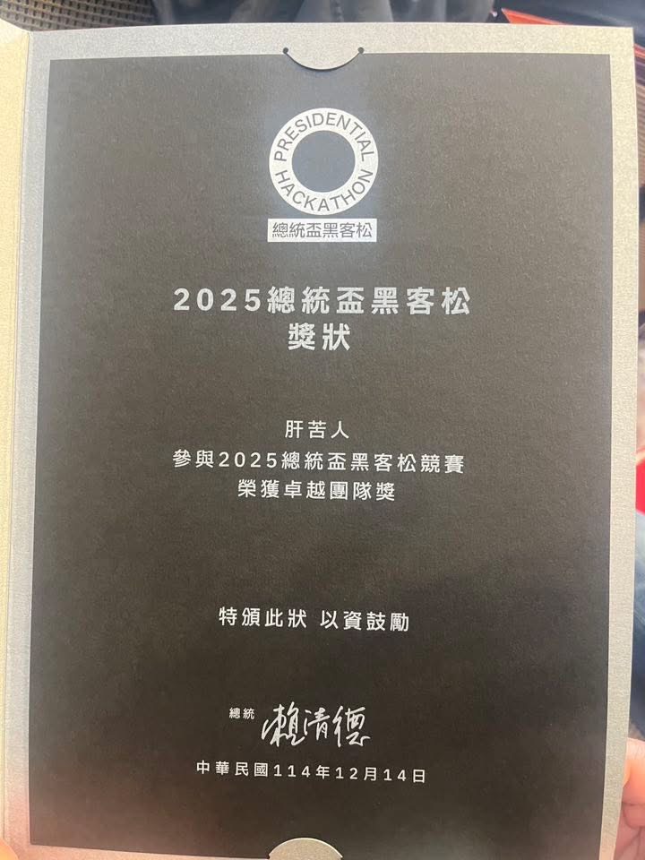 2025總統盃黑客松獎狀