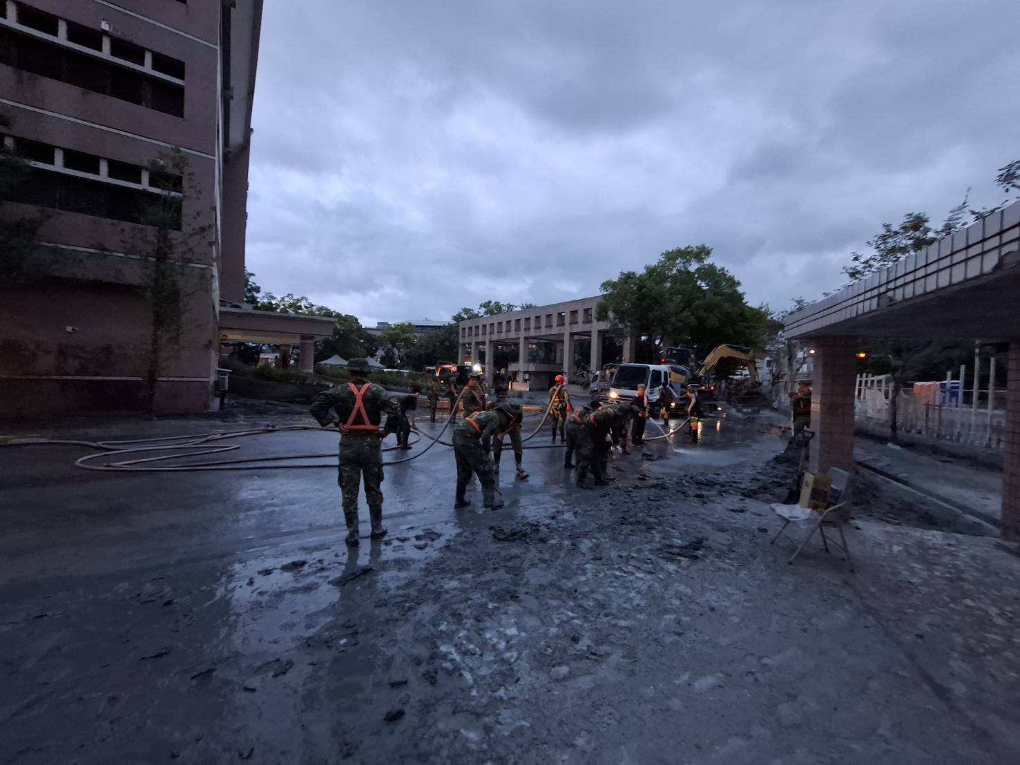 詳細內容:本局自10月4日起支援花蓮地區災後復原,歷時11日,消防與義消同仁全力投入光復商工校園清淤、環境整復等任務,已於10月14日完成階段性目標,人車皆平安返局。 一、執行重點地點 協助光復商工校園地下室、操場及排水溝泥沙清除,恢復校長辦公大樓前廣場、行政大樓、圖書館及視聽大樓中庭等區域清洗。另針對教職員與學生宿舍及周邊道路環境整理。 二、支援能量概況 1.支援期間:10月4日至10月14日,共11日。 2.動員人力:消防人員59名、義消22名、替代役1名,累計246人次。 3.出勤車輛:水箱車7輛、後勤車26輛。