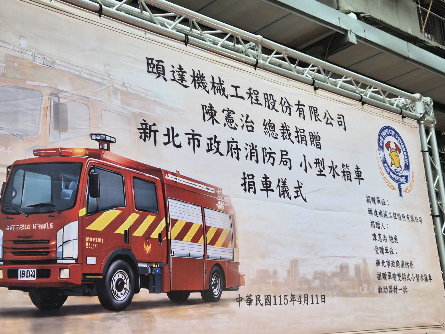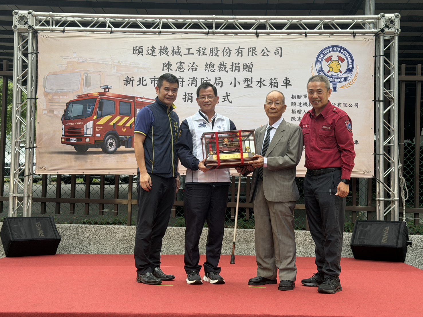 詳細內容:頤達機械工程股份有限公司總裁陳憲治先生成長於新莊與迴龍交界地區,雖然多年來在外打拚事業,始終心繫故里,基於回饋鄉里的初心,特別捐贈小型水箱消防車1輛及多項救災裝備器材,贈予本局第二救災救護大隊裕民分隊。本次捐贈之小型水箱車具備高度機動性,能迅速深入巷弄、即時投入搶救,爭取黃金救援時間,降低災害損失。另外,典禮中也特別頒發義消績優人員獎狀,肯定義消夥伴長期投入救災與服務的辛勞與付出。感謝頤達機械工程股份有限公司的善舉,也向所有義消同仁致上最高敬意。