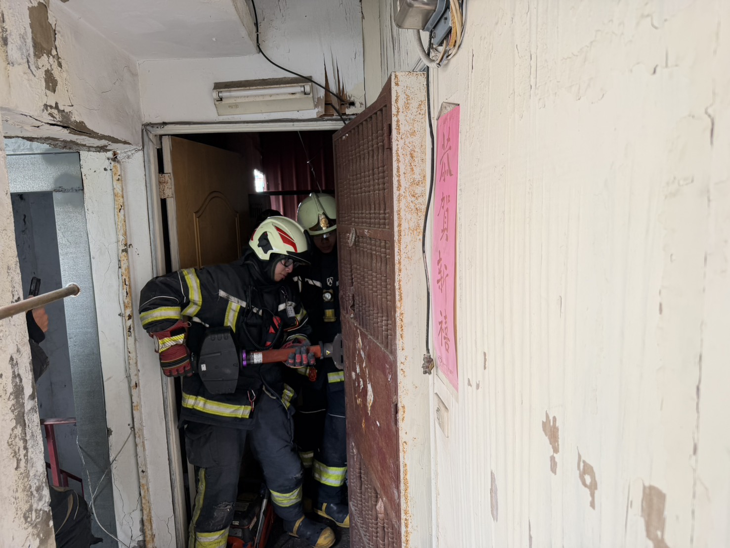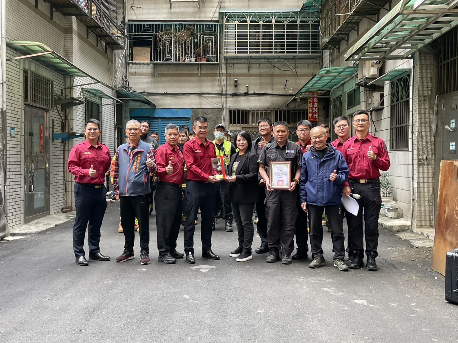詳細內容:為確保同仁執行火災搶救時自身安全與熟悉各項消防救災工作,實際執行破門、梯間佈線、濃煙搜索等作業,特與宸熙建設開發股份有限公司協調借用即將進行都更的一處老舊5樓公寓住宅,感謝建設公司提供建築物真實情境,為新進消防同仁增加操作經驗及學習救災技巧,提升整體救災能力。