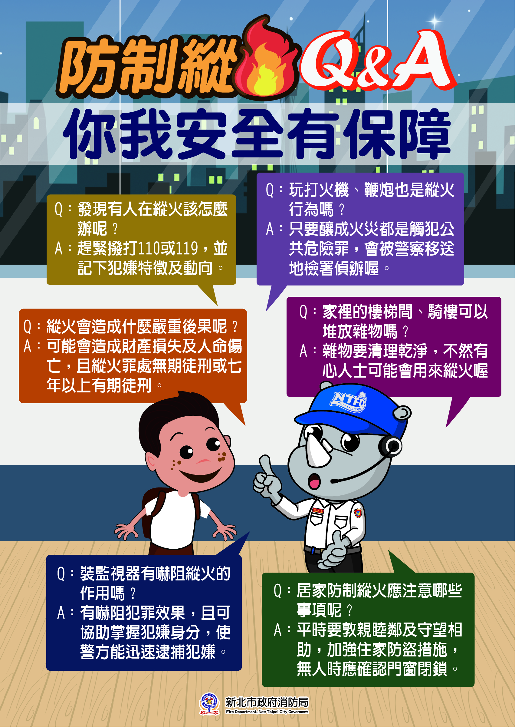 檢舉縱火不法專線:民眾如發現疑似縱火犯或與縱火有關可疑的人事物,請立即撥打119、110通報。